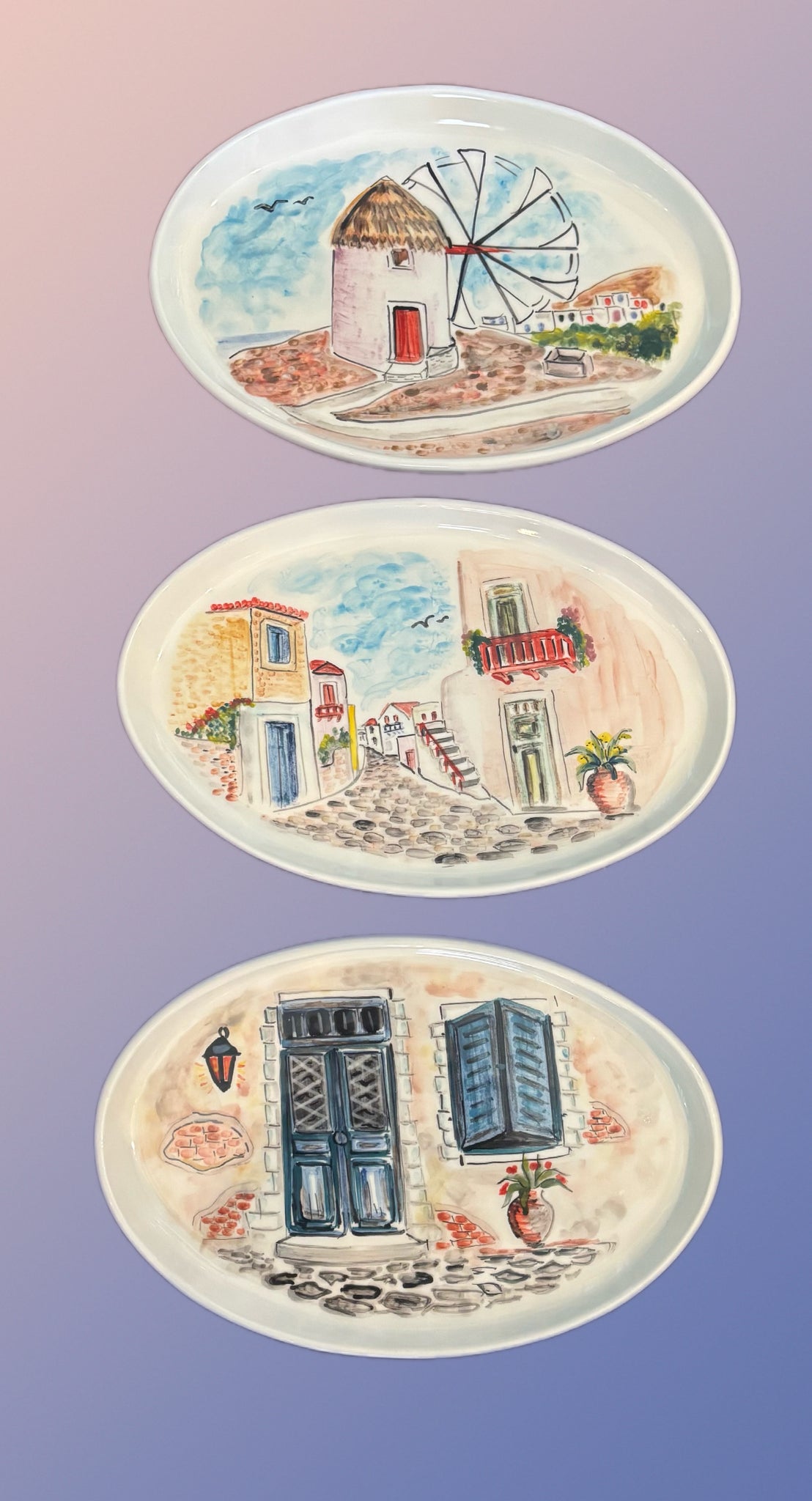 Decorated in a variety of traditional Greek scenes including villages and islands
