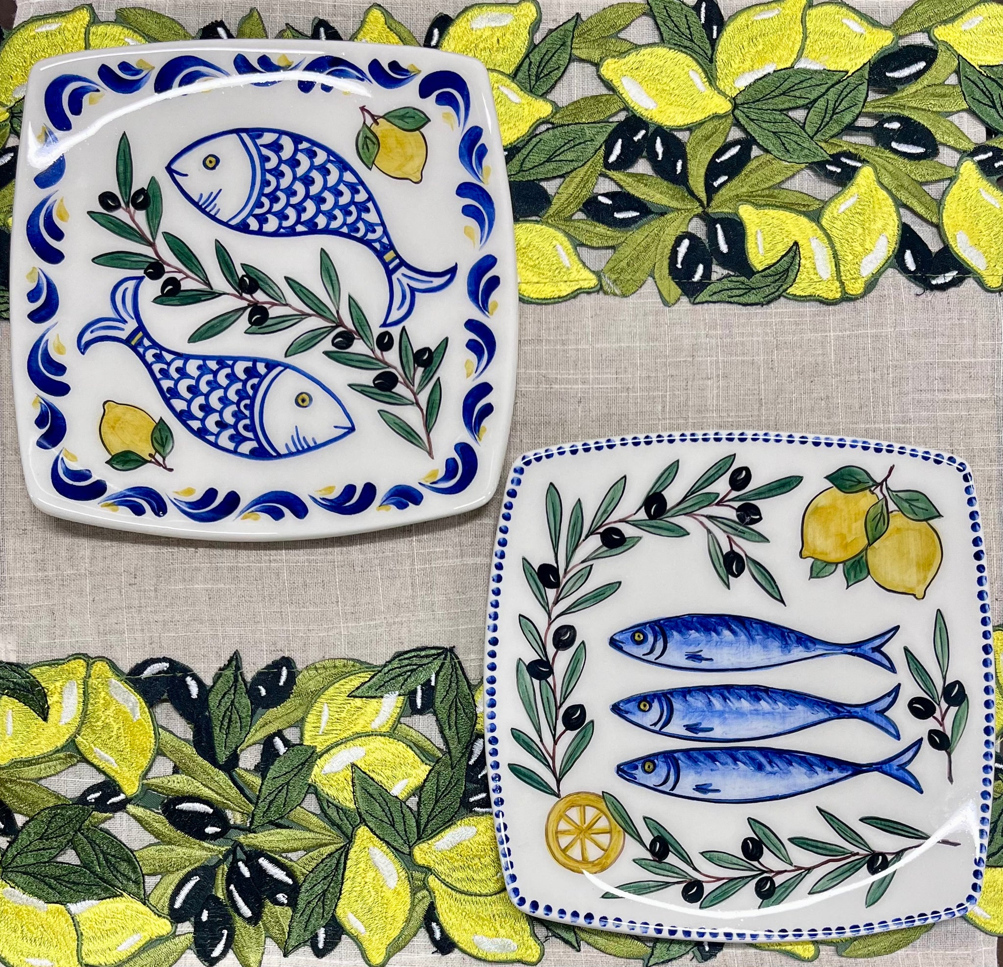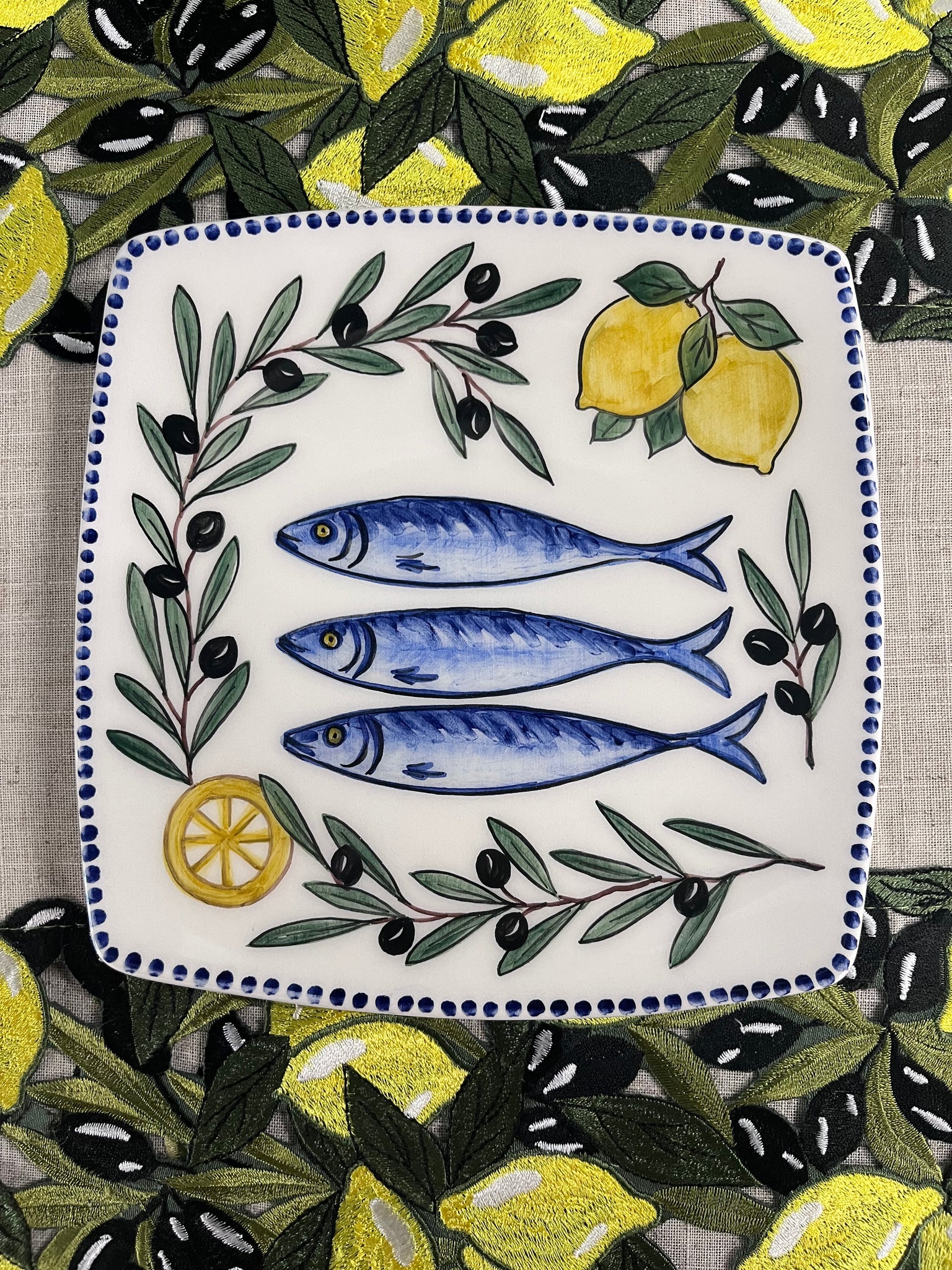 Ceramic earthenware square plate hand painted by Sofia. Perfect for display and serving. Food safe.